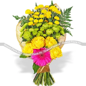 В объятиях любви - букет из хризантем и гербер
