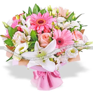 Виртуальная любовь - букет из белых лилий и альстромерии