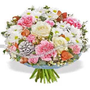 Новогодняя мечта - букет с розами и хризантемами, новогодний декор