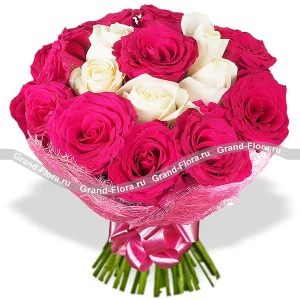 Аромат нежности – букет из белых и розовых роз (50-60 см)