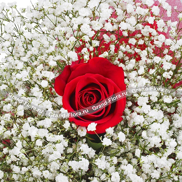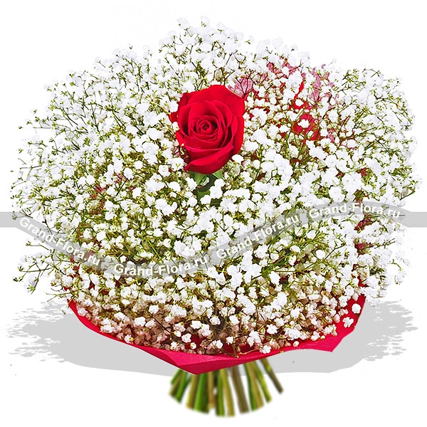 Стандартный (на фото): роза красная - 1 шт, гипсофила - 7 шт, фетр розовый.