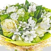 ЛЮКС: роза белая - 9 шт., эустома белая - 5 шт., альстромерия белая - 9 шт., хризантема кустовая зеленая - 7 шт., фетр зеленый.