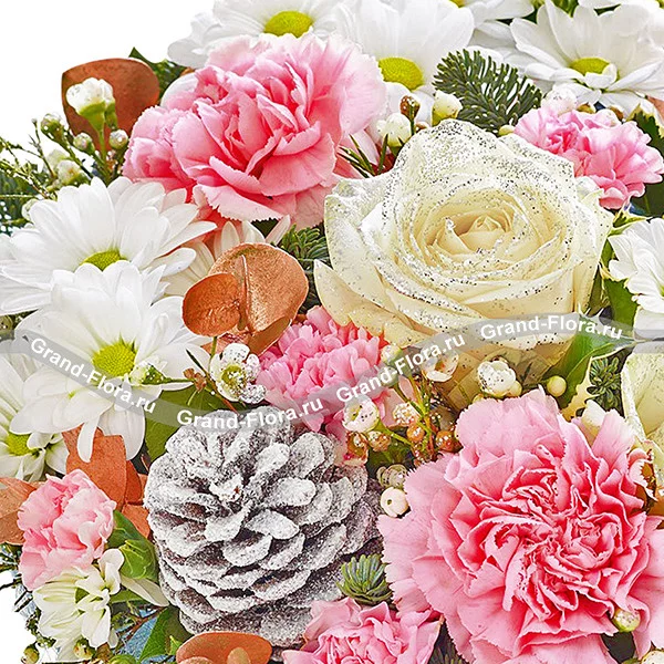Новогодняя мечта - букет с розами и хризантемами, новогодний декор