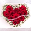 11 роз (на фото): роза красная - 11 шт., гипсофила, оазис сердце малое. Примерный размер: 25Х25 см.